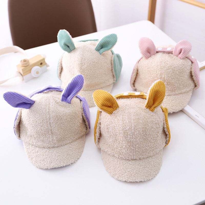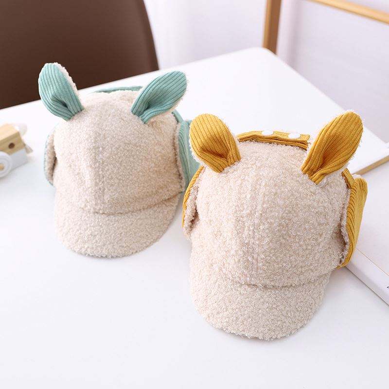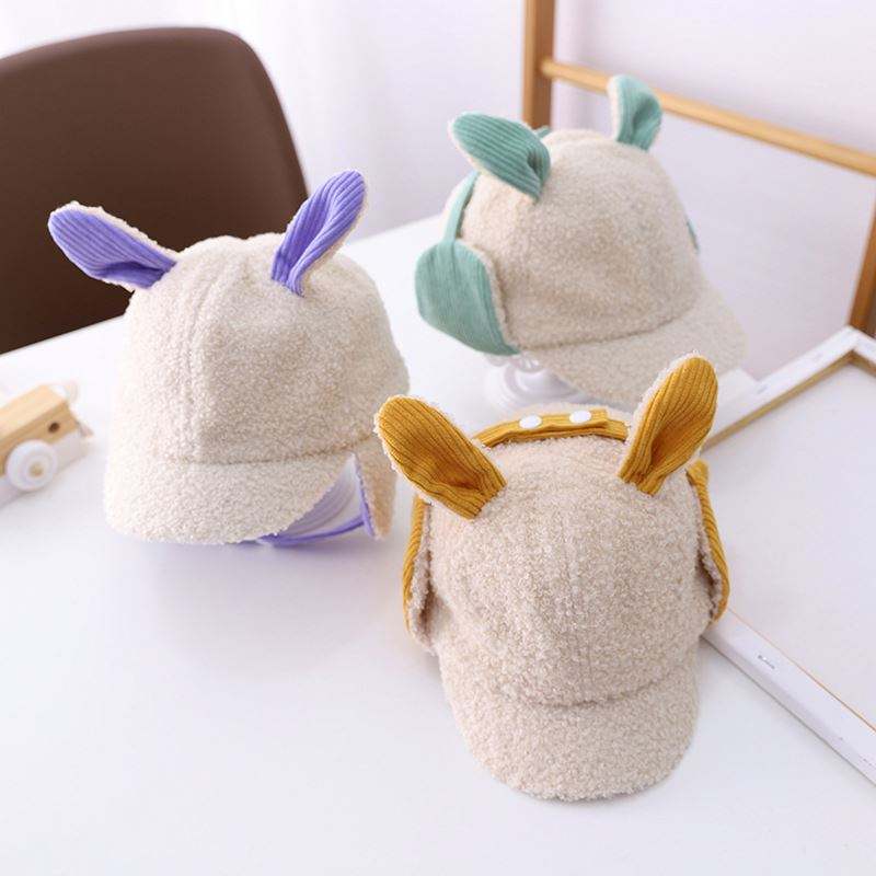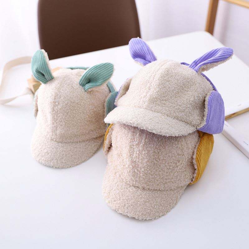 Gorro de Invierno para Niños Pequeños con Orejas de Conejo Personalizadas, Gorro de Béisbol para Niños con Orejeras de Felpa con Logotipo Personalizado