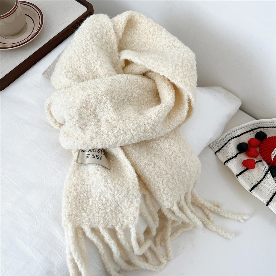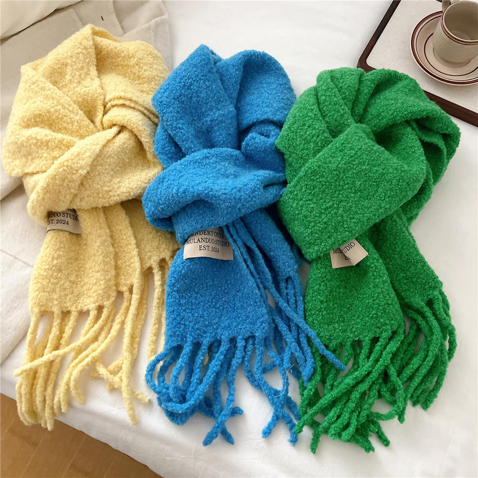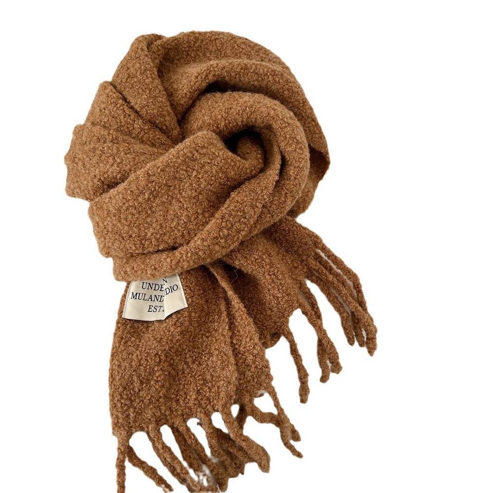 Bufanda de Lana Larga para Estudiantes, Cálida para Invierno, de Secado Rápido, con Diseño Sólido, Estilo Coreano Retro, Estilo Maillard Mohai