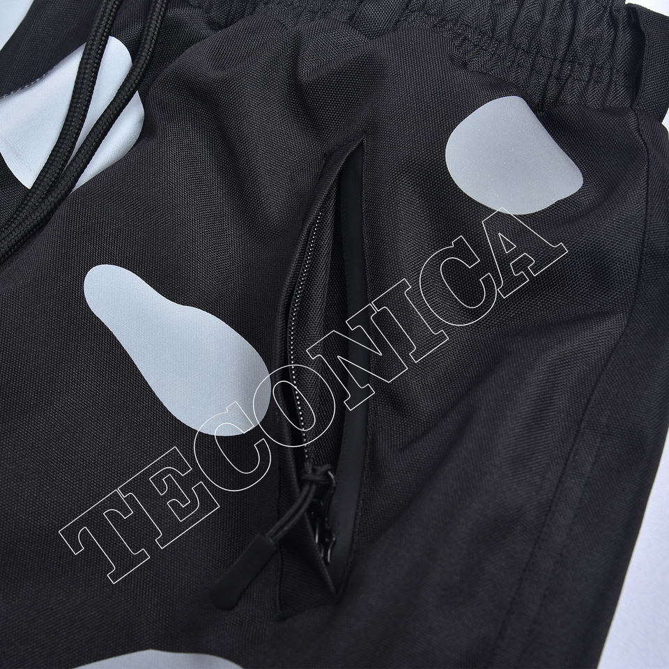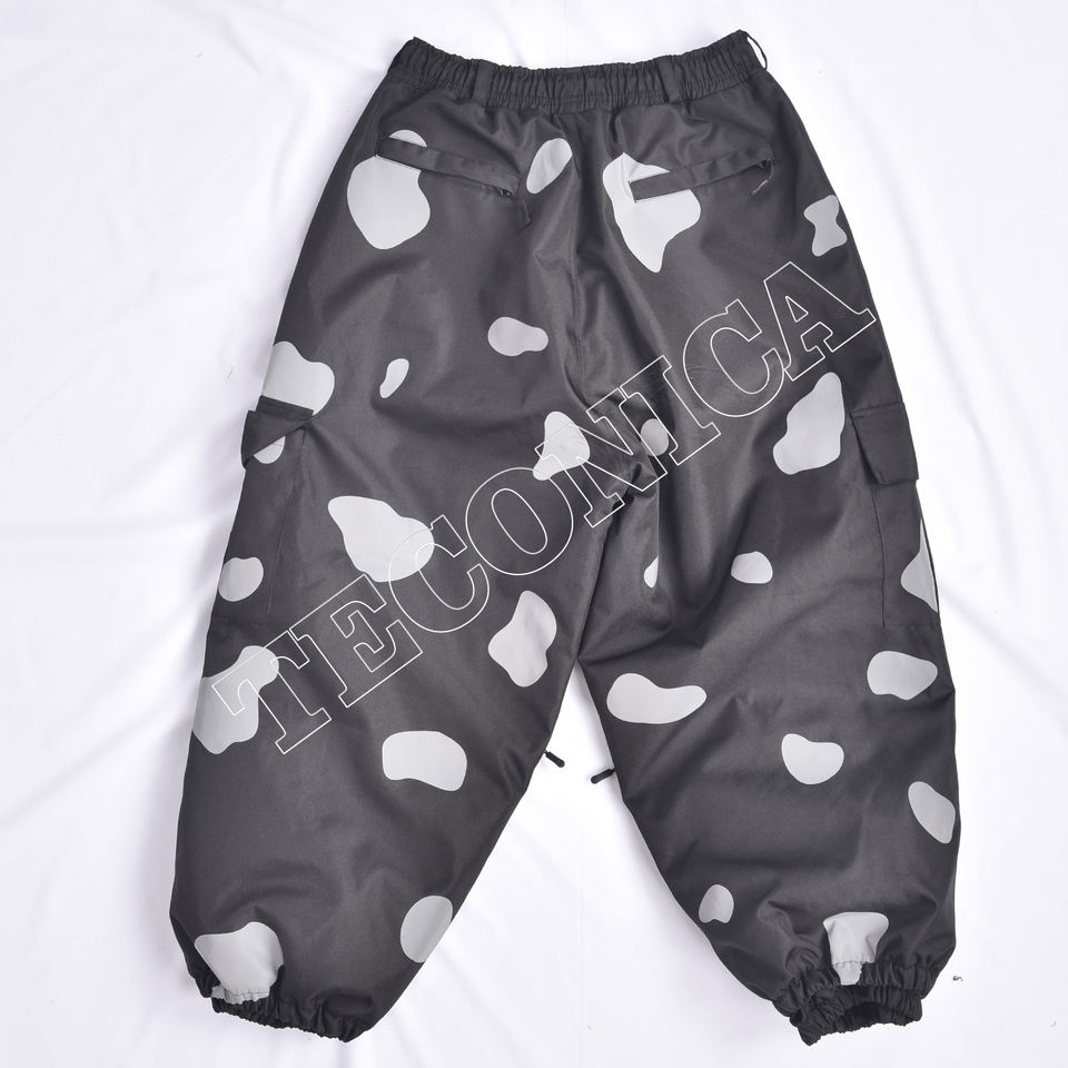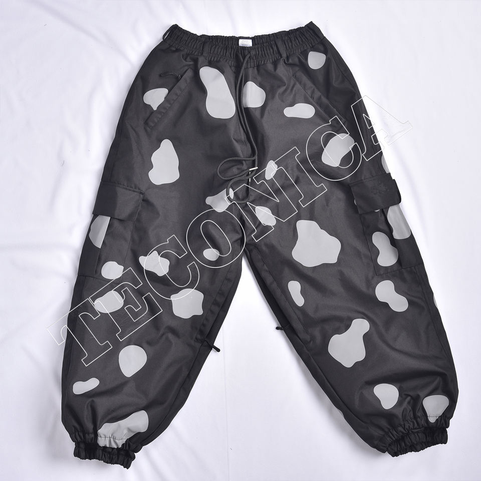 Pantalones de Nieve Negros Impermeables de Invierno con Estampado de Vaca Reflectante, Bolsillos de Almacenamiento Tipo Cargo, Cintura con Cordón y Puños Elásticos