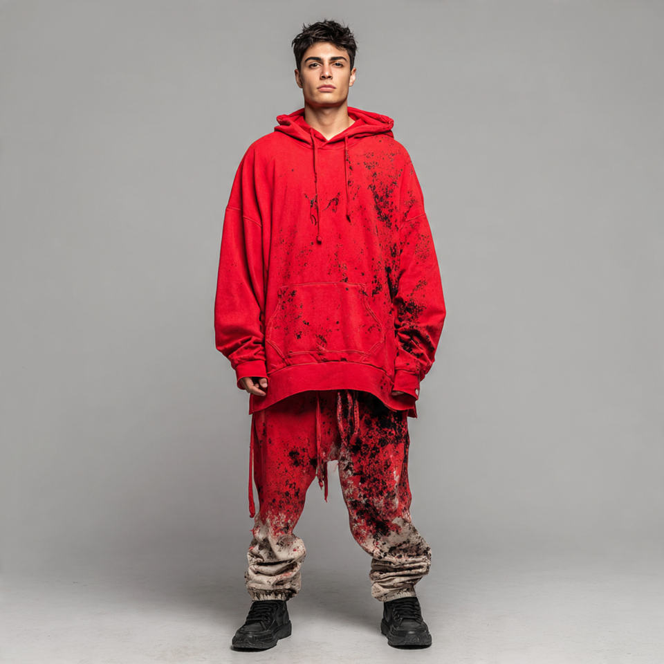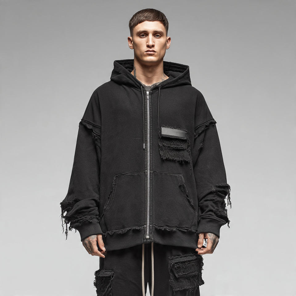 Palabras clave:Sudadera con capucha holgada desgastada con cremallera para hombre