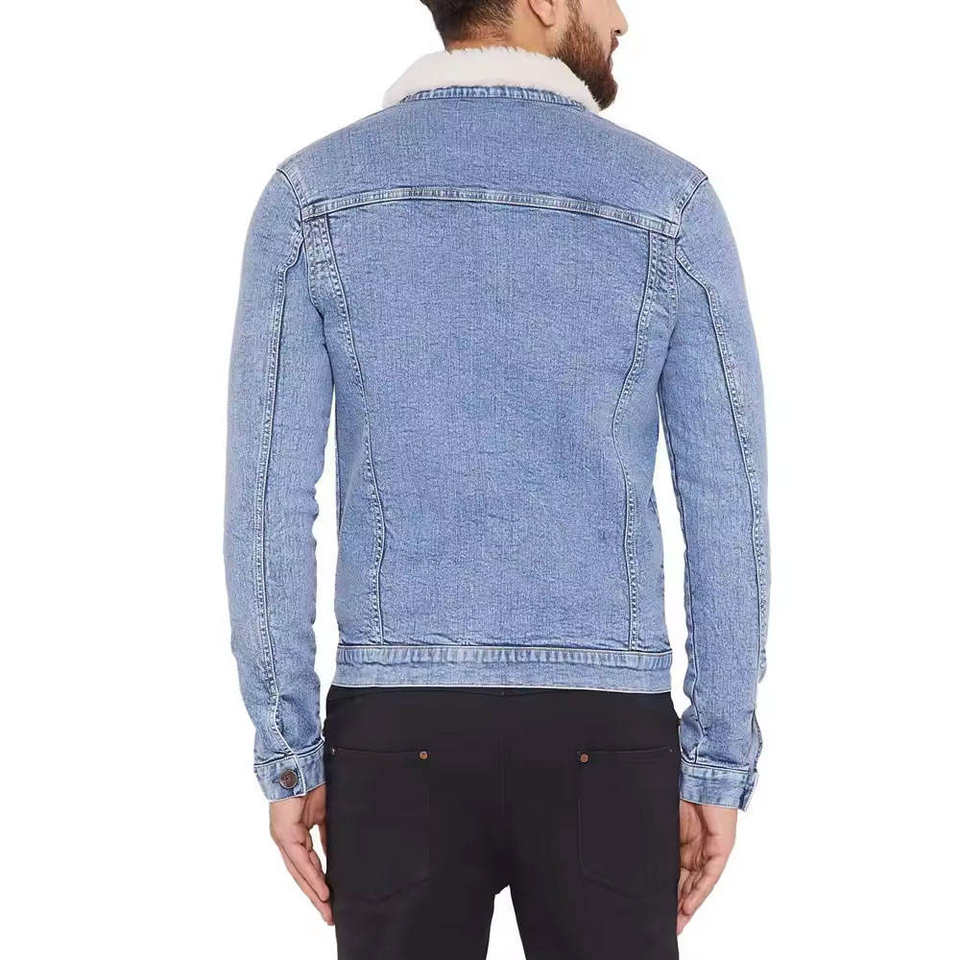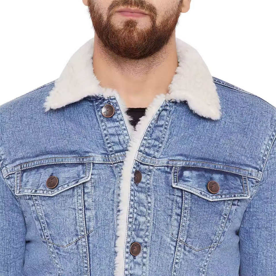 Chaqueta de mezclilla con forro polar de invierno para hombre, abrigo grueso y cálido con cuello Sherpa, abrigo vaquero azul desgastado, moda informal