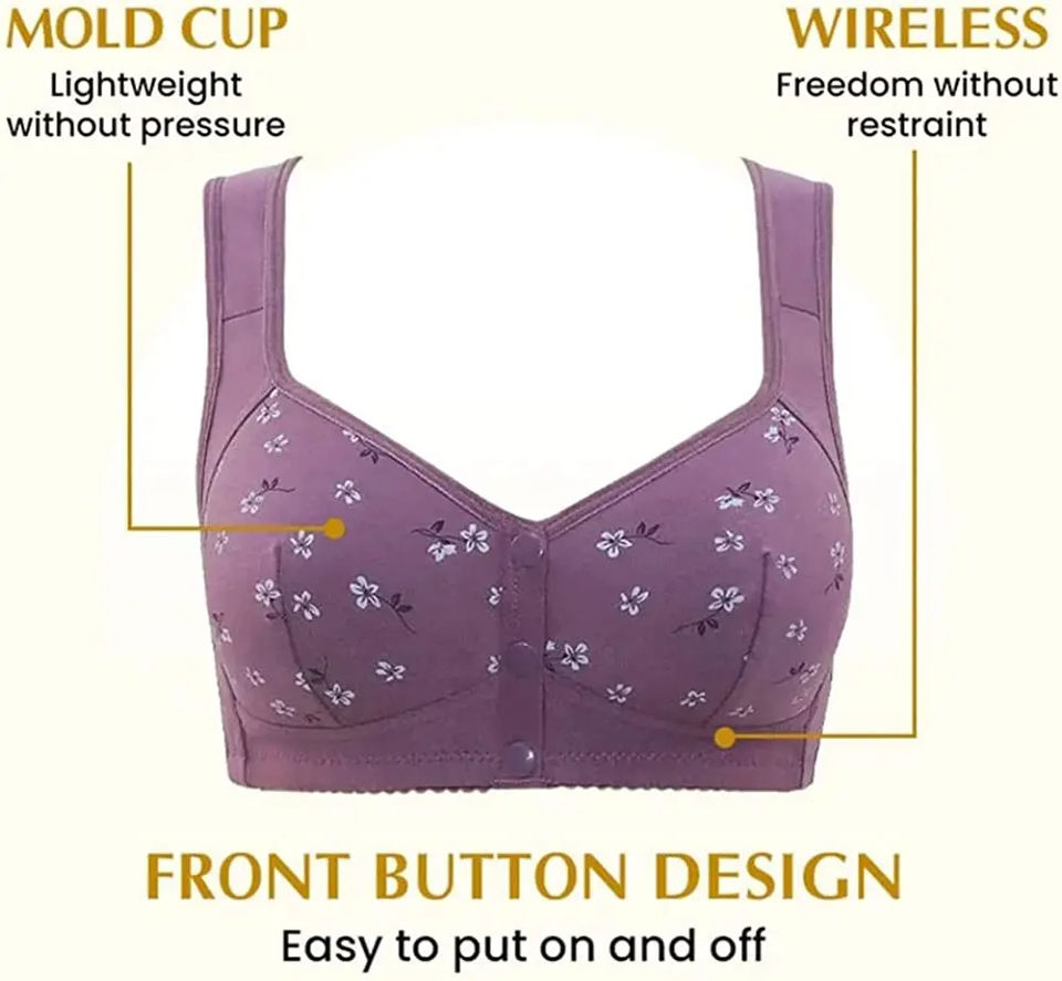 Camisola sin Tirantes con Cierre Delantero para Mujer, Talla Grande, Transpirable, con Estampado Floral, Tirantes Anchos, Lencería