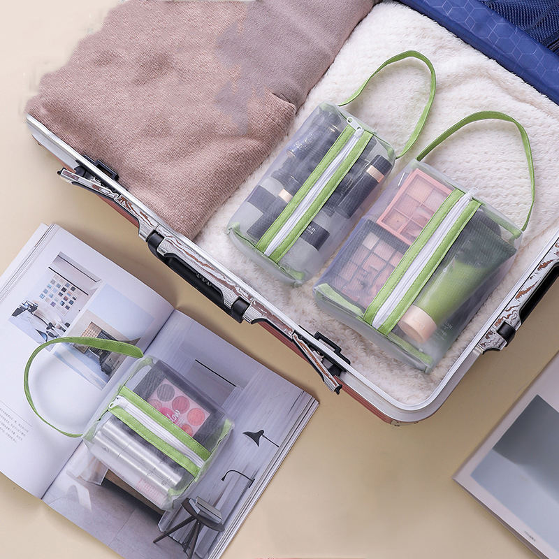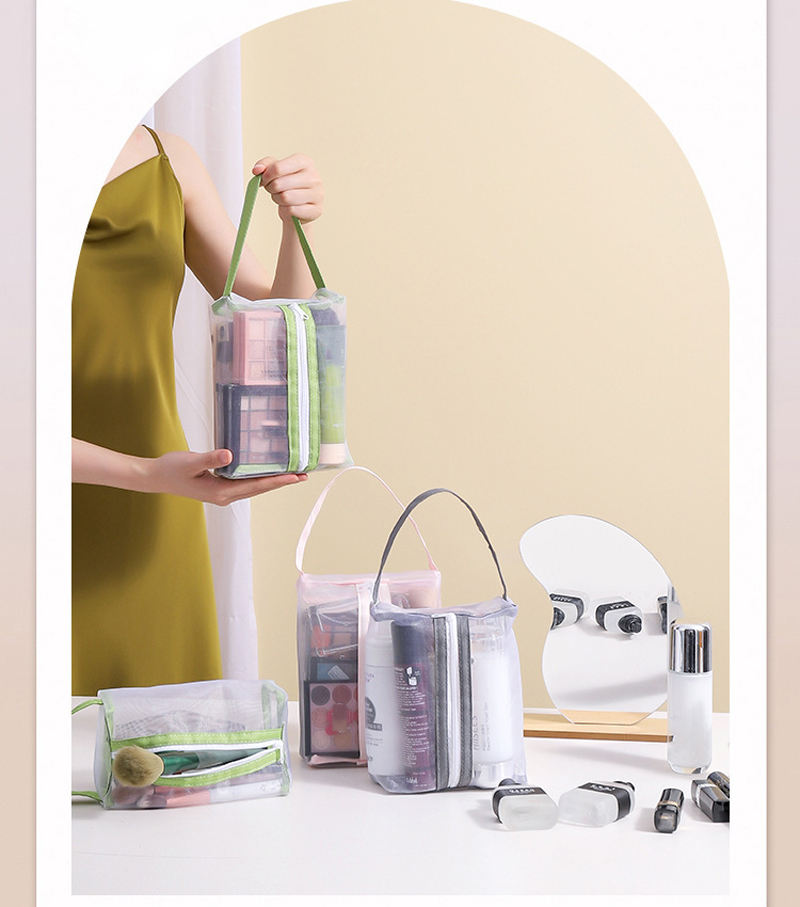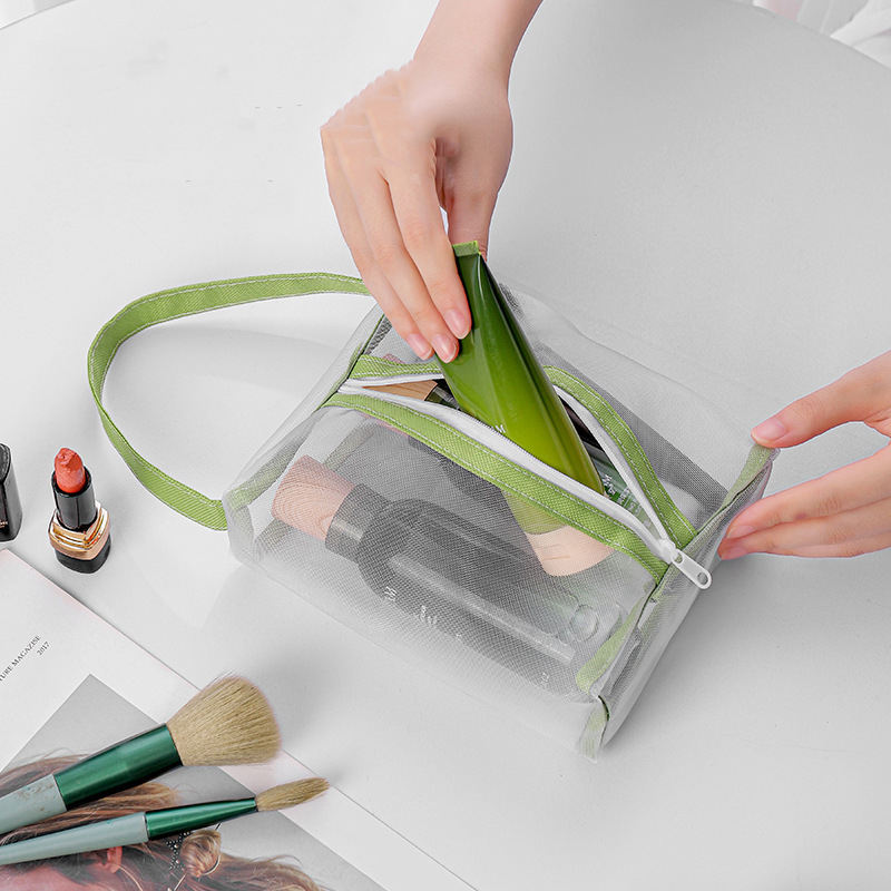 Bolsa de Maquillaje Transparente de Malla Metálica, Bolsa de Almacenamiento de Artículos de Aseo de Viaje de Diseño Simple