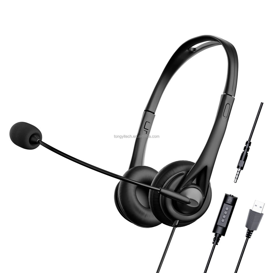 Auriculares con Cable para Computadora con Micrófono sin Cancelación de Ruido, Conector USB de 3.5 mm para PC, Portátil, Oficina, Centro de Llamadas, Teléfono, Clase en Línea