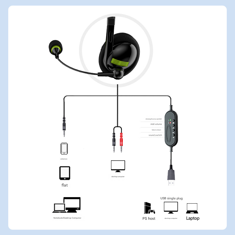 Auriculares con Cable, Control en Línea, USB, para Computadora, Cancelación Activa de Ruido, Resistentes al Agua IPX-2, para Estudiantes, Clases en Línea