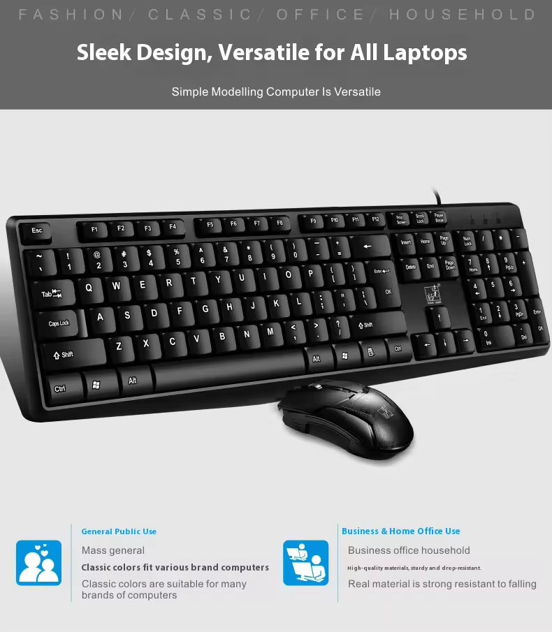 Conjunto de teclado y ratón con cable USB para computadora, oficina, hogar, uso empresarial, venta al por mayor