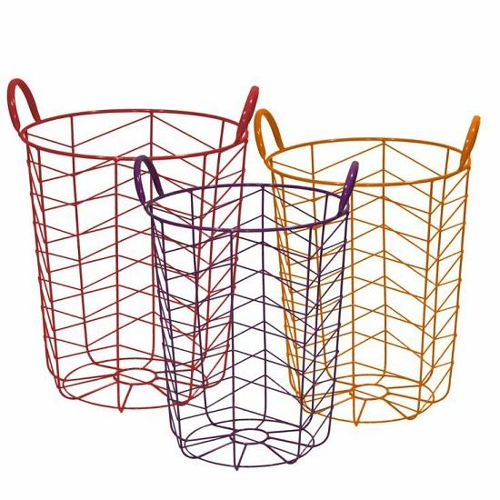 Juego de Cestas de Almacenamiento de Alambre de Alta Calidad, Diseño Redondo Decorativo de Hierro con Asas, Organización del Hogar, Lavandería, Decoración Moderna