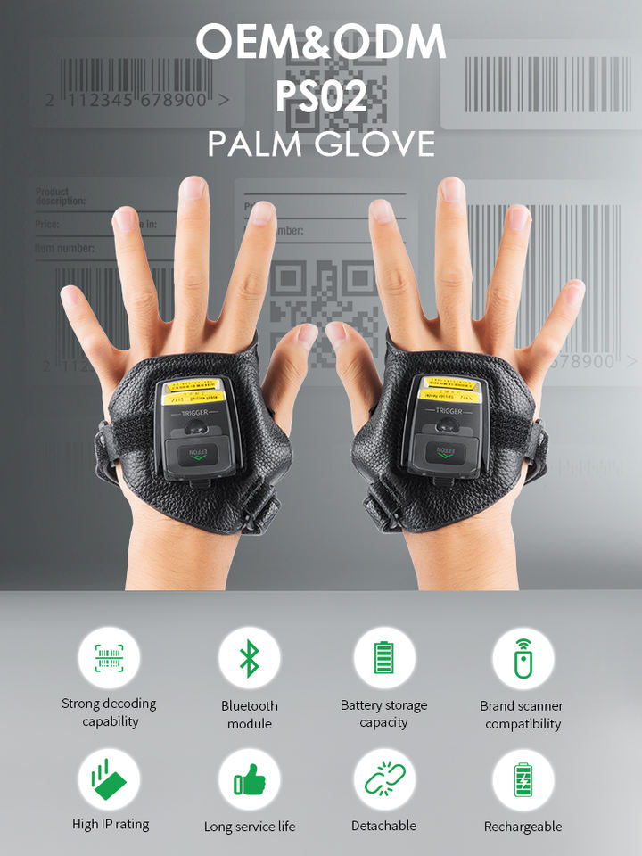 Escáner de Código de Barras Bluetooth Inalámbrico 1D2D con Guante, que Permite una Gestión Eficiente de Almacenes para la Logística de Almacenes
