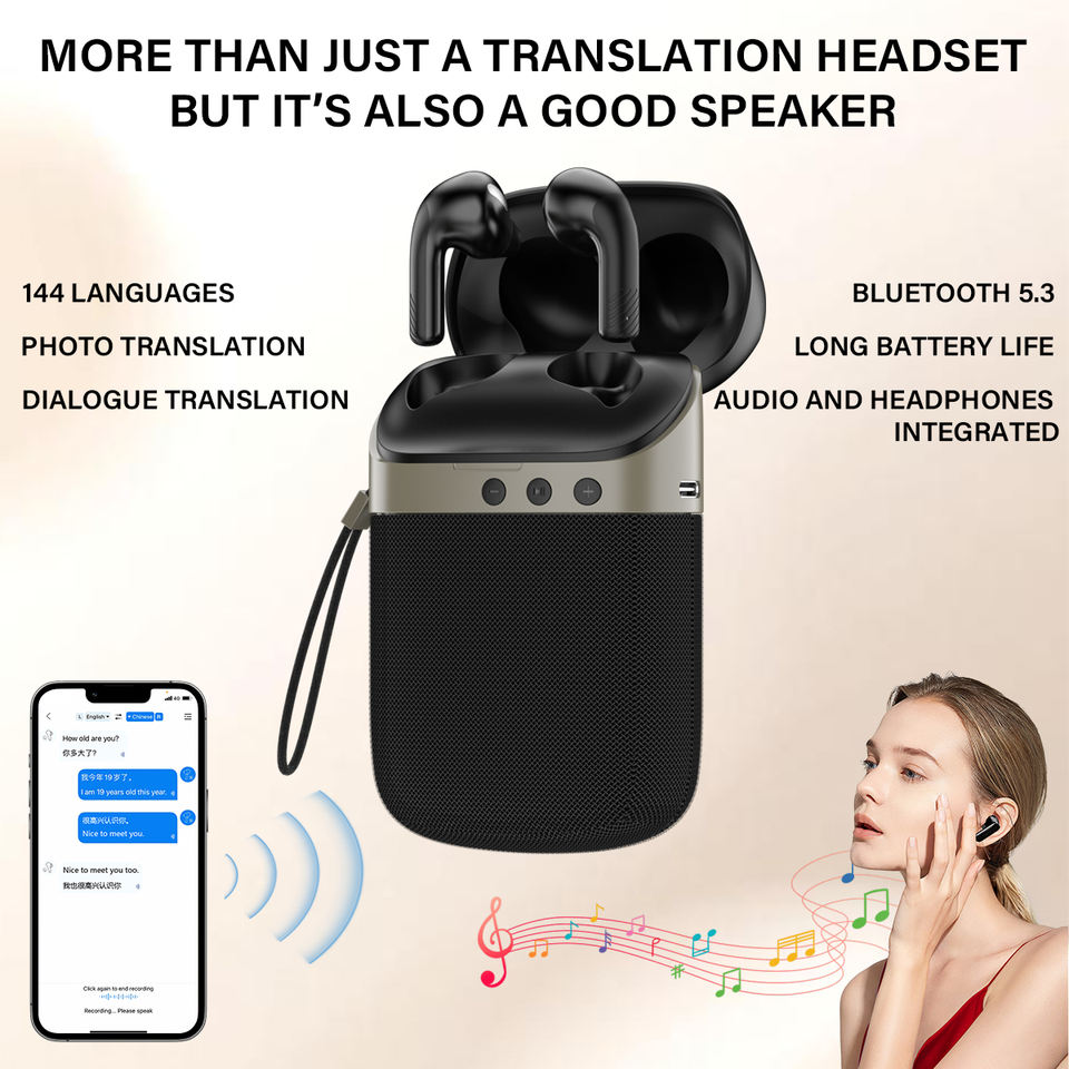 Auriculares Inalámbricos 3 en 1 con Altavoz, Traductor con IA Chatgpt, Auriculares con Traducción en Tiempo Real a 144 Idiomas, 98% de Precisión