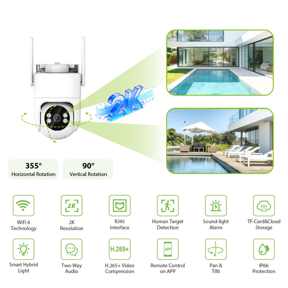 Wireless 3MP Security Camera WiFi 6 Technology 355° Rotation Two-way Audio Smart Hybrid Light Outdoor Camera