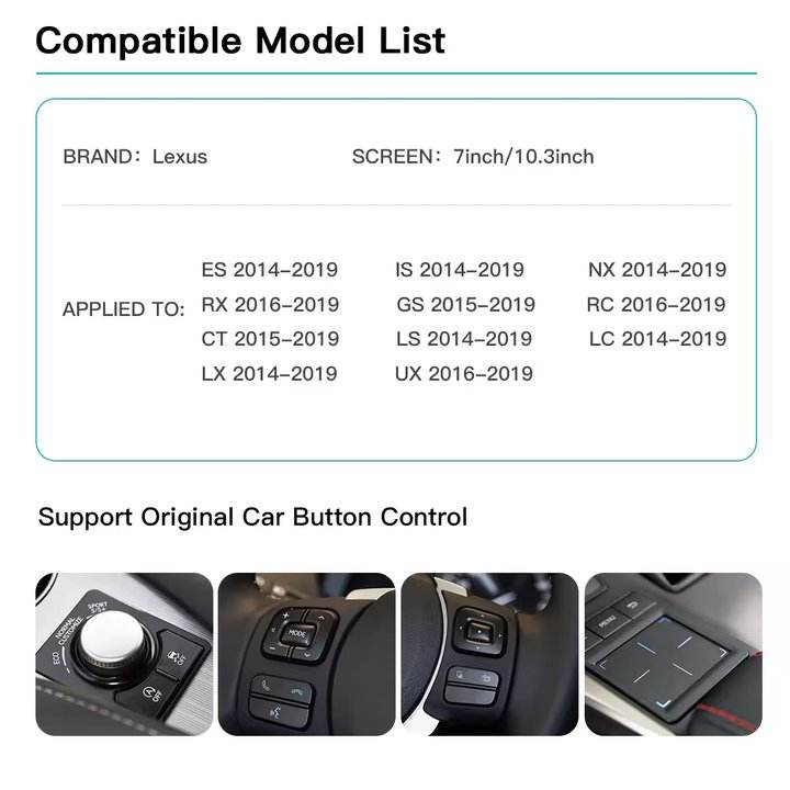 Número de Modelo:For LEXUS Netflix CT ES GS IS LC LS LX NX RX