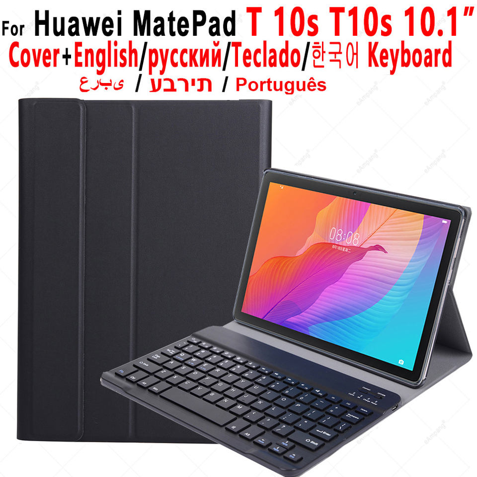 Funda con Teclado Inalámbrico BT para Tablet Huawei MatePad T10/T10s AGS3-W09 L09, Traducción en Ruso, Español, Inglés, Coreano y Árabe, USB