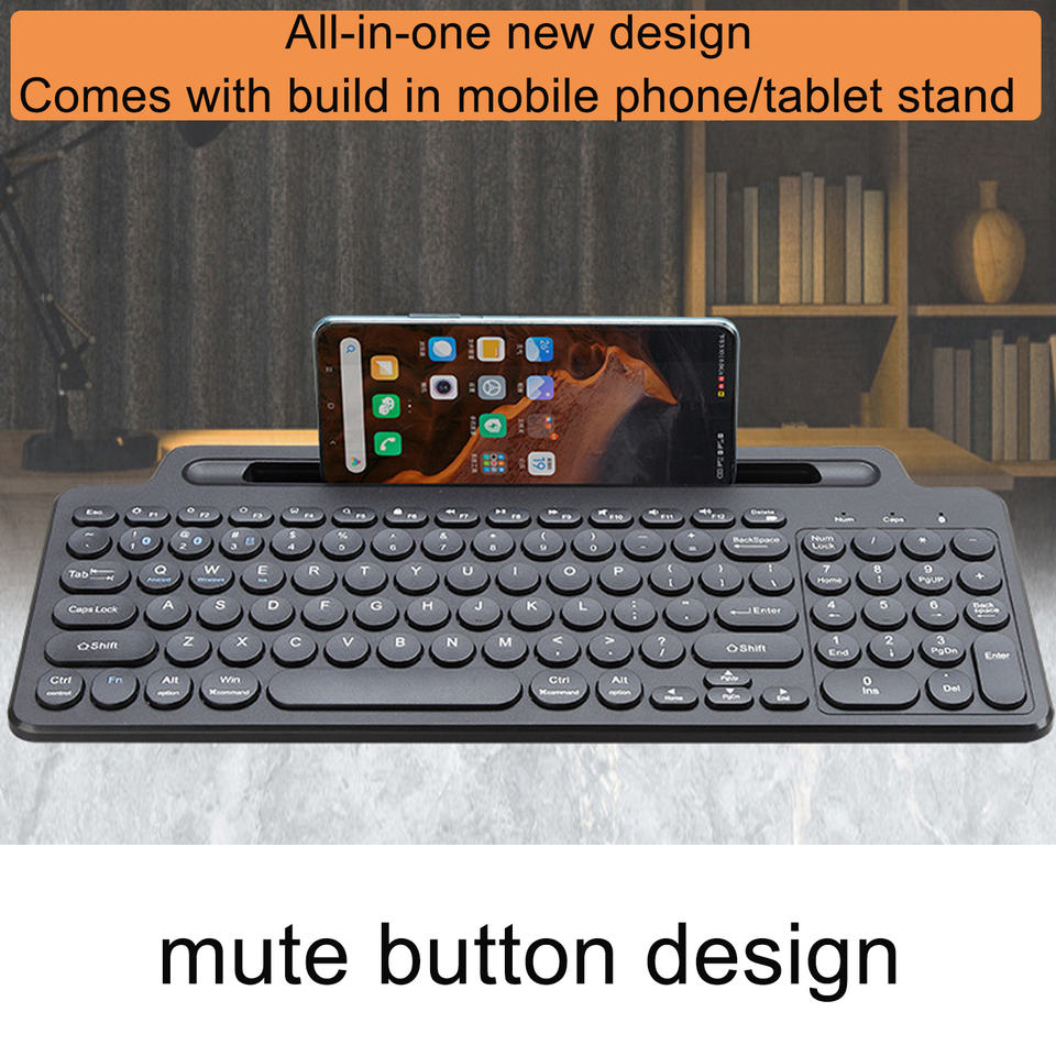 Teclado inalámbrico con Bluetooth y soporte incorporado, fácil Control multimedia para tableta de oficina/teléfono/ordenador/portátil