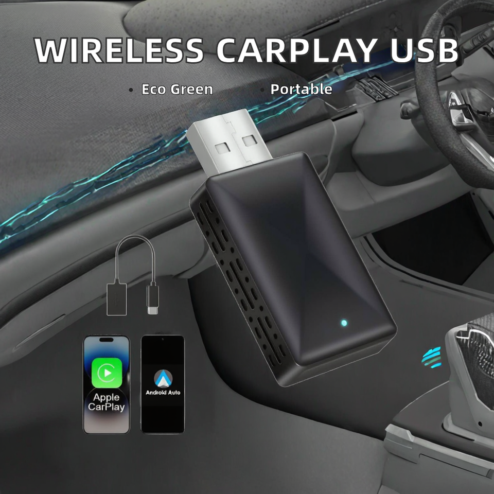 Adaptador Inalámbrico CarPlay y Android Auto Actualizado 2025, Tamaño Mini 2 en 1, USB-C/Tipo C, Plástico, 1 Año de Garantía