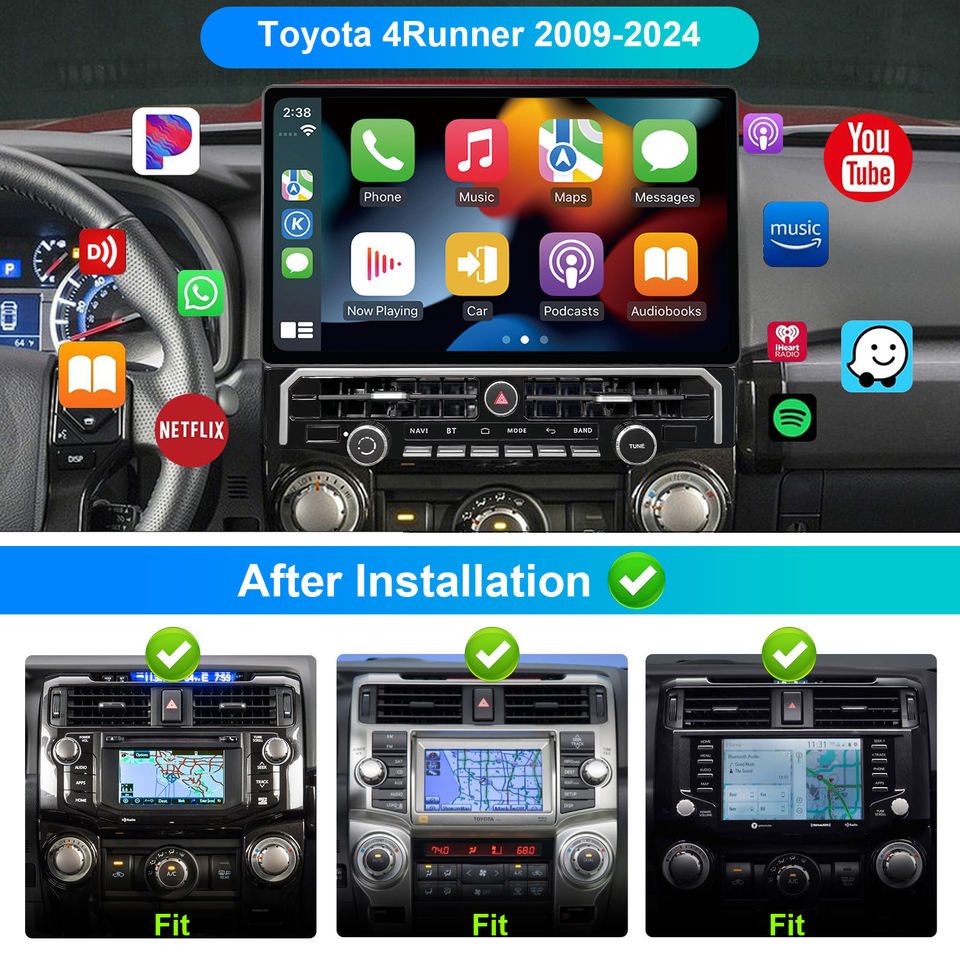 Estéreo Inalámbrico para Auto con CarPlay y Android Auto para Toyota 4Runner 2009 - Pantalla Táctil HD Android de 16 Pulgadas, Navegación GPS, Radio, Bluetooth