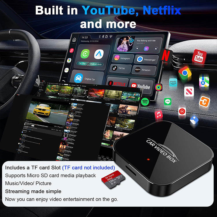 CarPlay inalámbrico y Android Auto Multimedia Dongle Dual WiFi 1 año de garantía compatible con Apple Android 12 Youtube y Netflix para coches