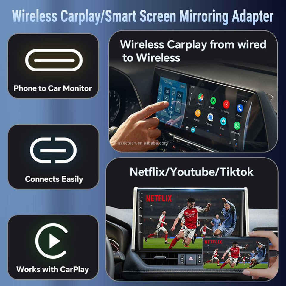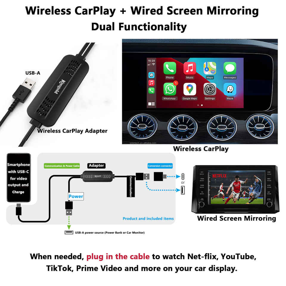 Monitor Portátil para Auto con CarPlay y Android Auto Inalámbricos, Puerto Tipo-C, Compatible con Netflix/Youtube, Navegación GPS, Función DEX