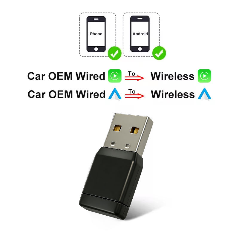 Adaptador Inalámbrico CarPlay y Android Auto, Mini USB C con Cable a Inalámbrico, Portátil, BT para Autos