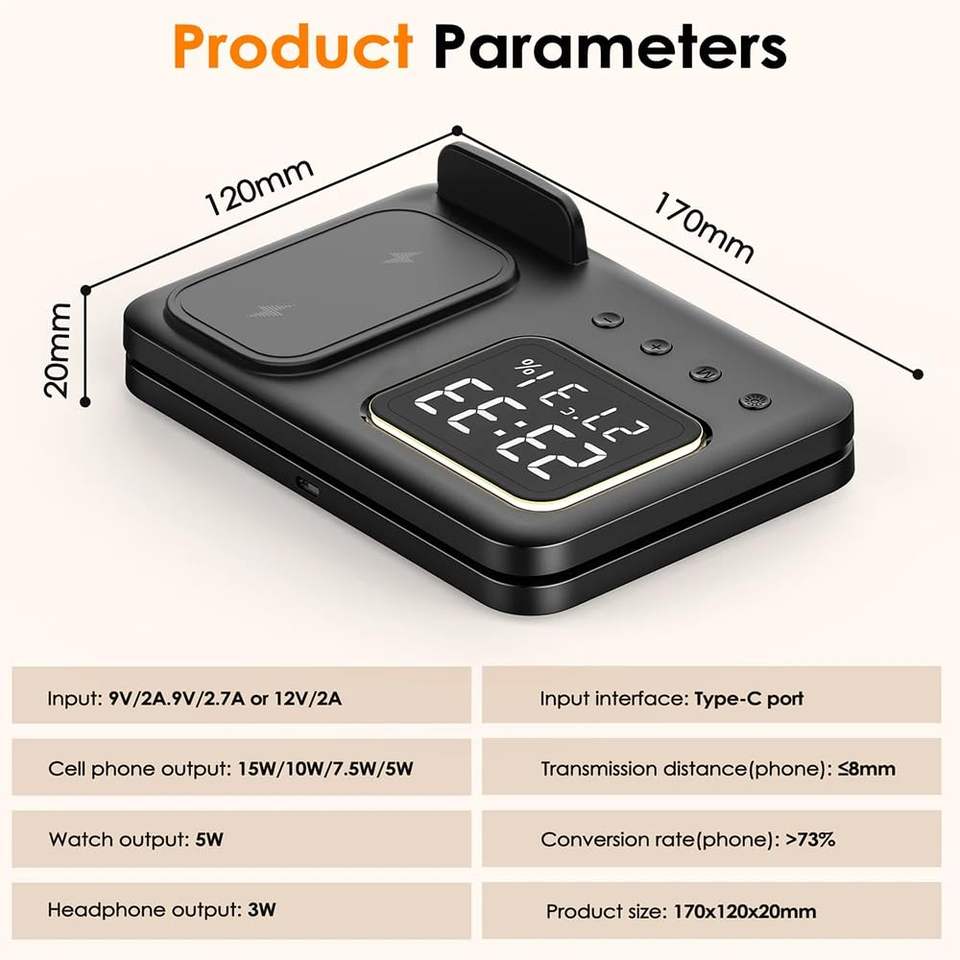 Estación de carga inalámbrica para dispositivos Apple y teléfonos Samsung, base de carga inalámbrica 5 en 1 con reloj despertador y Luz
