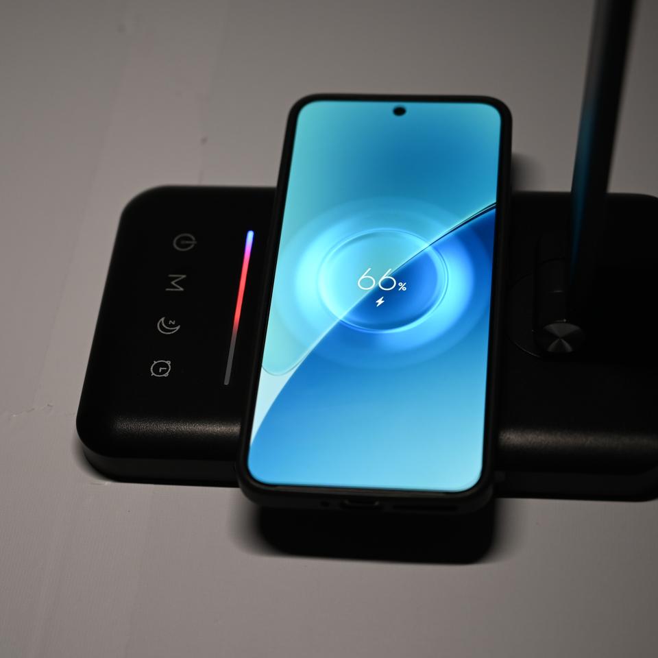 Lámpara de Mesa con Carga Inalámbrica, 6 Modos de Iluminación, 5 Cambios de Color, Táctil, con Adaptador para Sala de Estar, Luz Nocturna LED