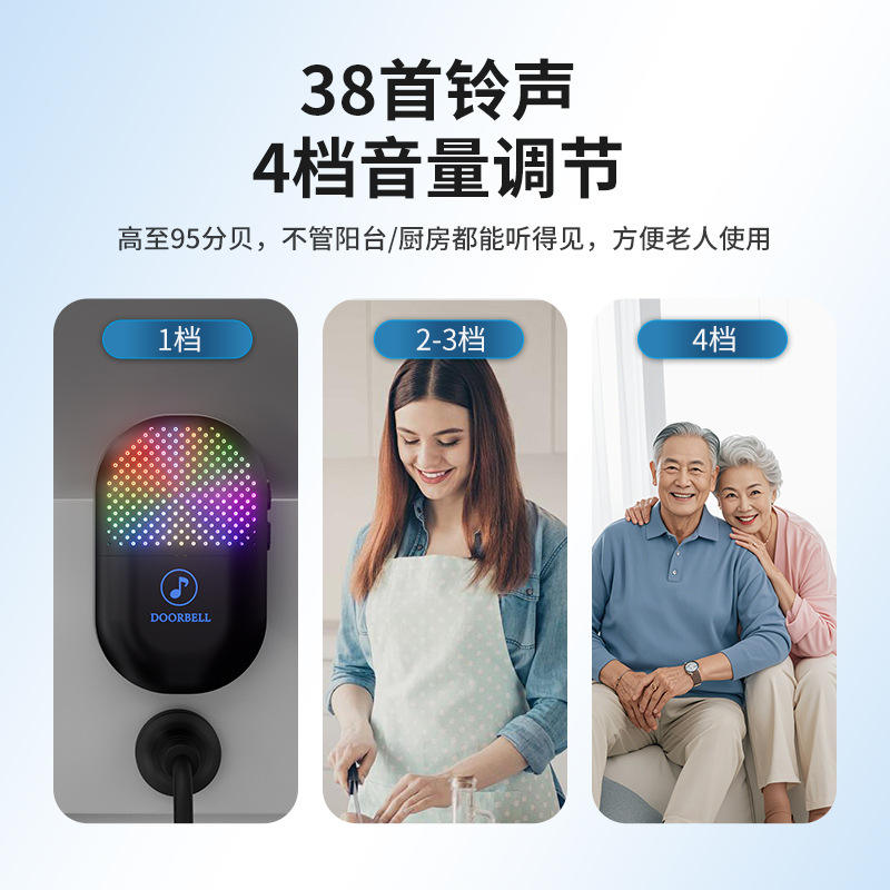 Timbre inalámbrico 901190 con alimentación por batería y 32 melodías para uso doméstico