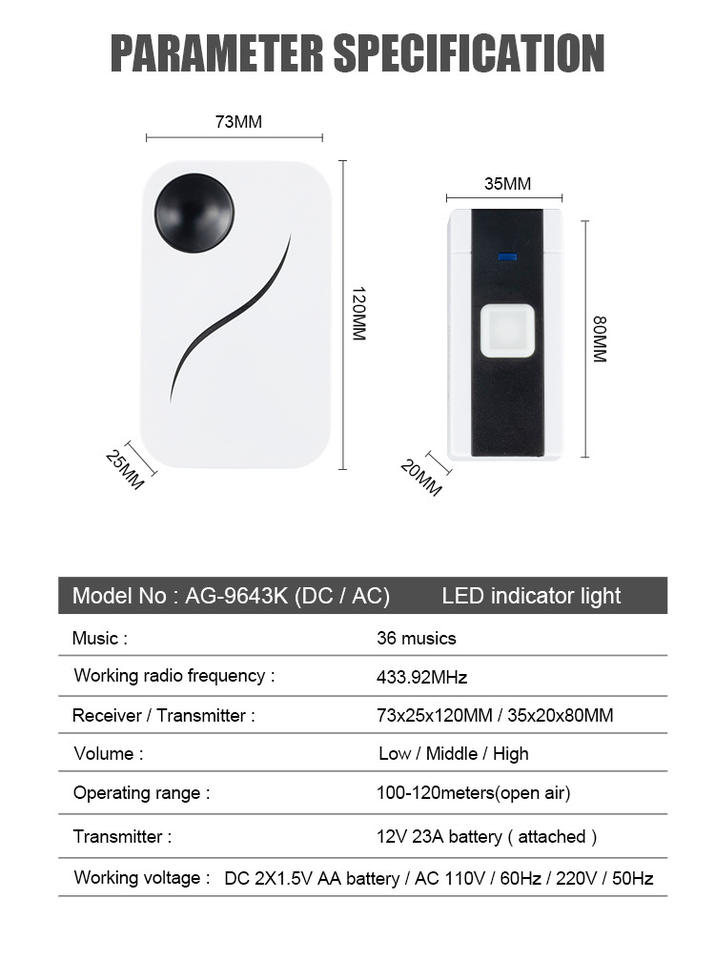 Timbre inalámbrico DC Fabricante Venta directa Timbre