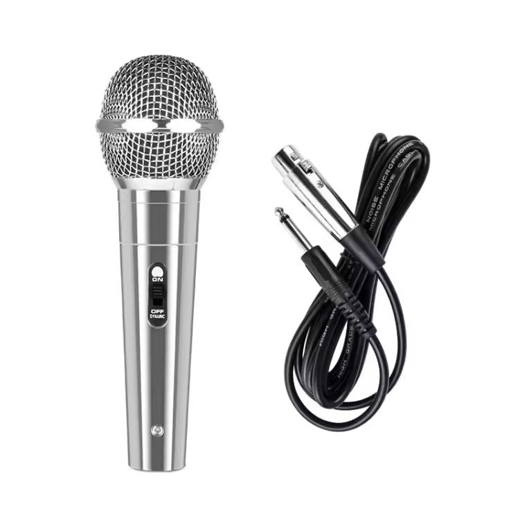 Micrófono Dinámico Inalámbrico para Sistema de Audio KTV en Casa, Amplificador de Potencia, Conferencias, Escenario, Karaoke Clásico Plateado de Mano