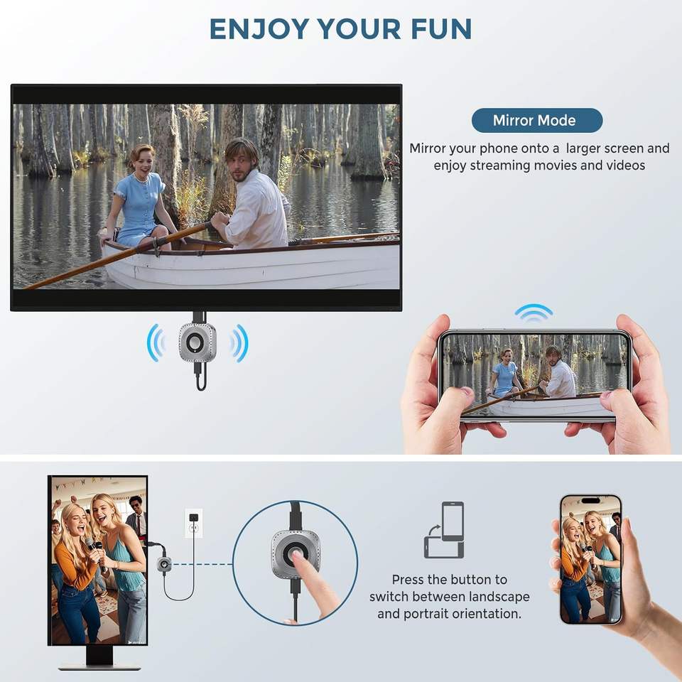 Adaptador Inalámbrico HDMI para iPhone y iPad, Dispositivo de Transmisión, Sincronización de Video HD, Duplicación de YouTube y TikTok a TV