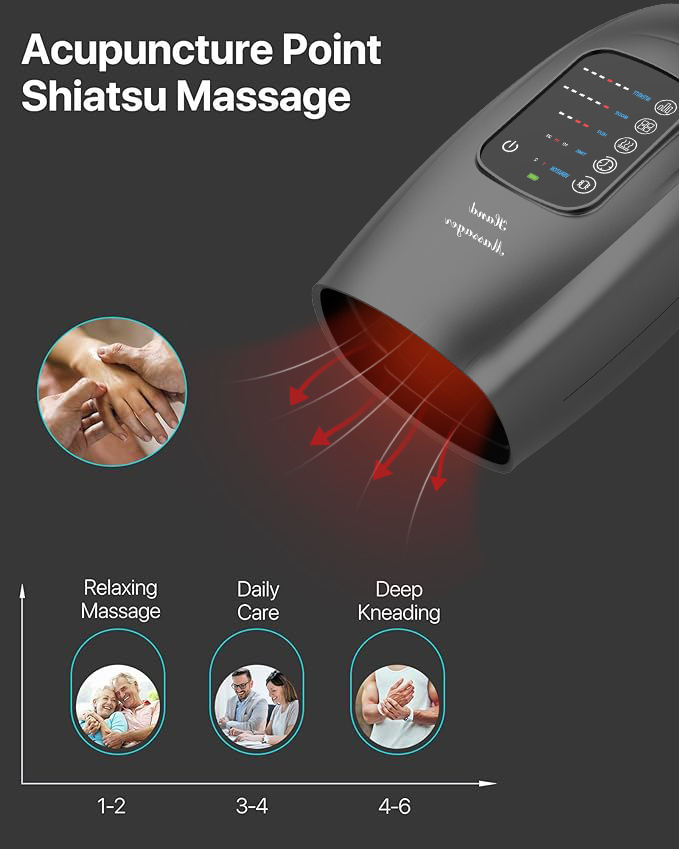 Máquina masajeadora de manos inalámbrica con calor, masajeador de manos eléctrico para artritis, compresión de aire, masajeador de manos y palma mejorado