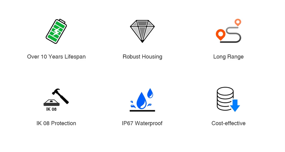 Sensor de Estacionamiento Inteligente Inalámbrico IoT LAS7 | Sensor Dual (Radar+Geomagnético) | Resistente al Agua IP67 | LoRaWAN Clase A 1.0.3 BLE | Semtech