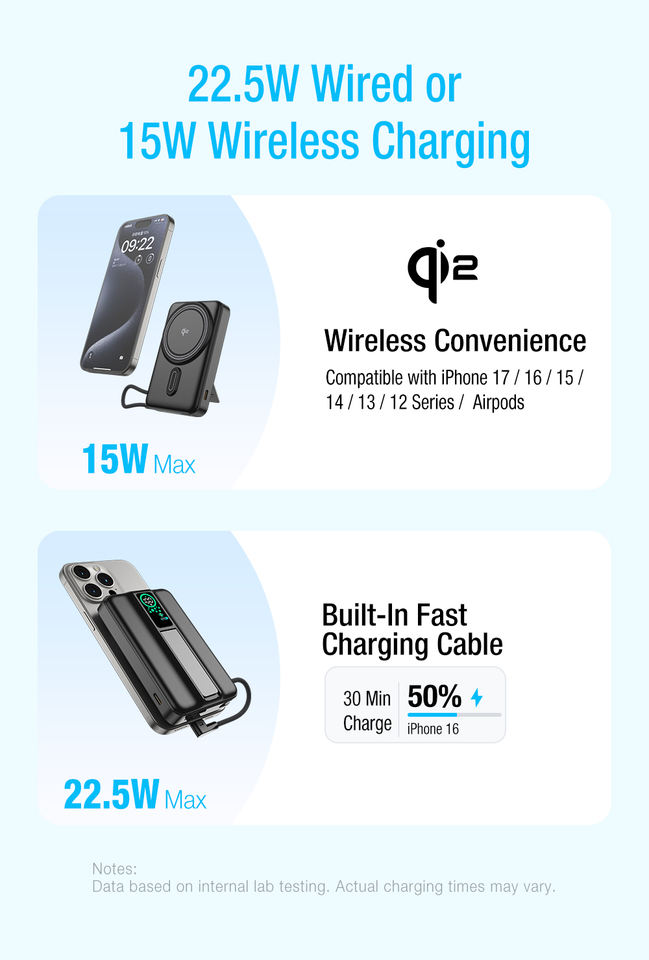 Baterías Externas Magnéticas Inalámbricas Qi2 con Tecnología de Estado Sólido