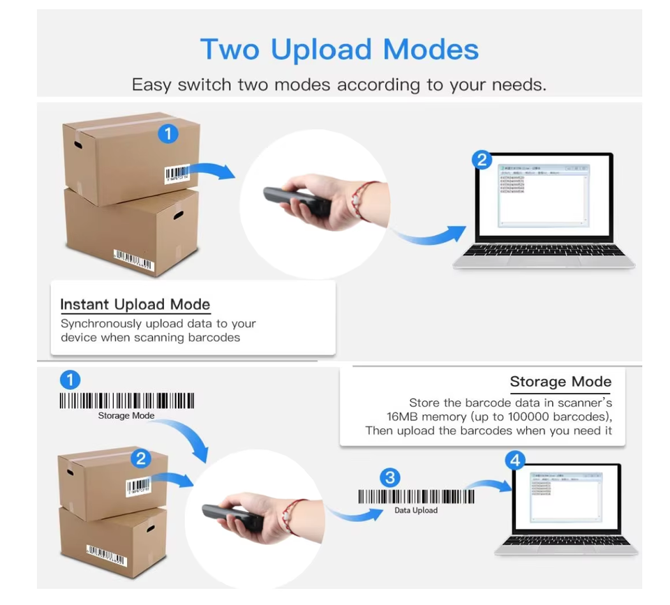 Escáner de Códigos de Barras Inalámbrico Portátil BT QR, Mini Lector de Códigos de Barras 1D 2D Alacrity para Android POS, Disponible en Negro