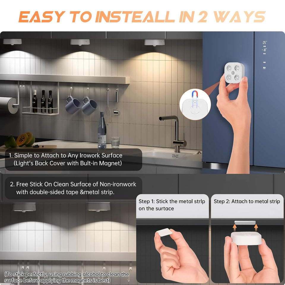 Luces LED Inalámbricas Recargables con Sensor de Movimiento, Luces Nocturnas Magnéticas para Interiores con 3 Modos de Color, Luz Adhesiva para Debajo del Gabinete