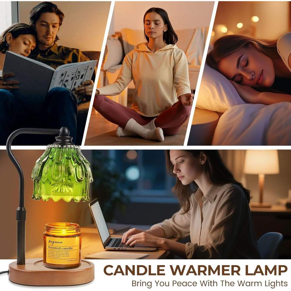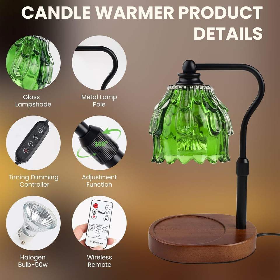 Lámpara Calentadora de Velas Inalámbrica con Control Remoto, Regulable, con Temporizador y Altura Ajustable para Velas en Frasco