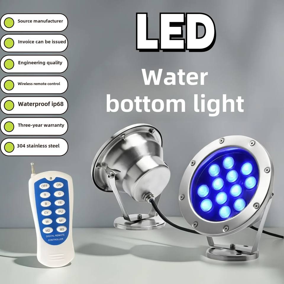 Control remoto inalámbrico LED luz subacuática 24V Acero inoxidable foco impermeable para fuente de piscina iluminación de pecera
