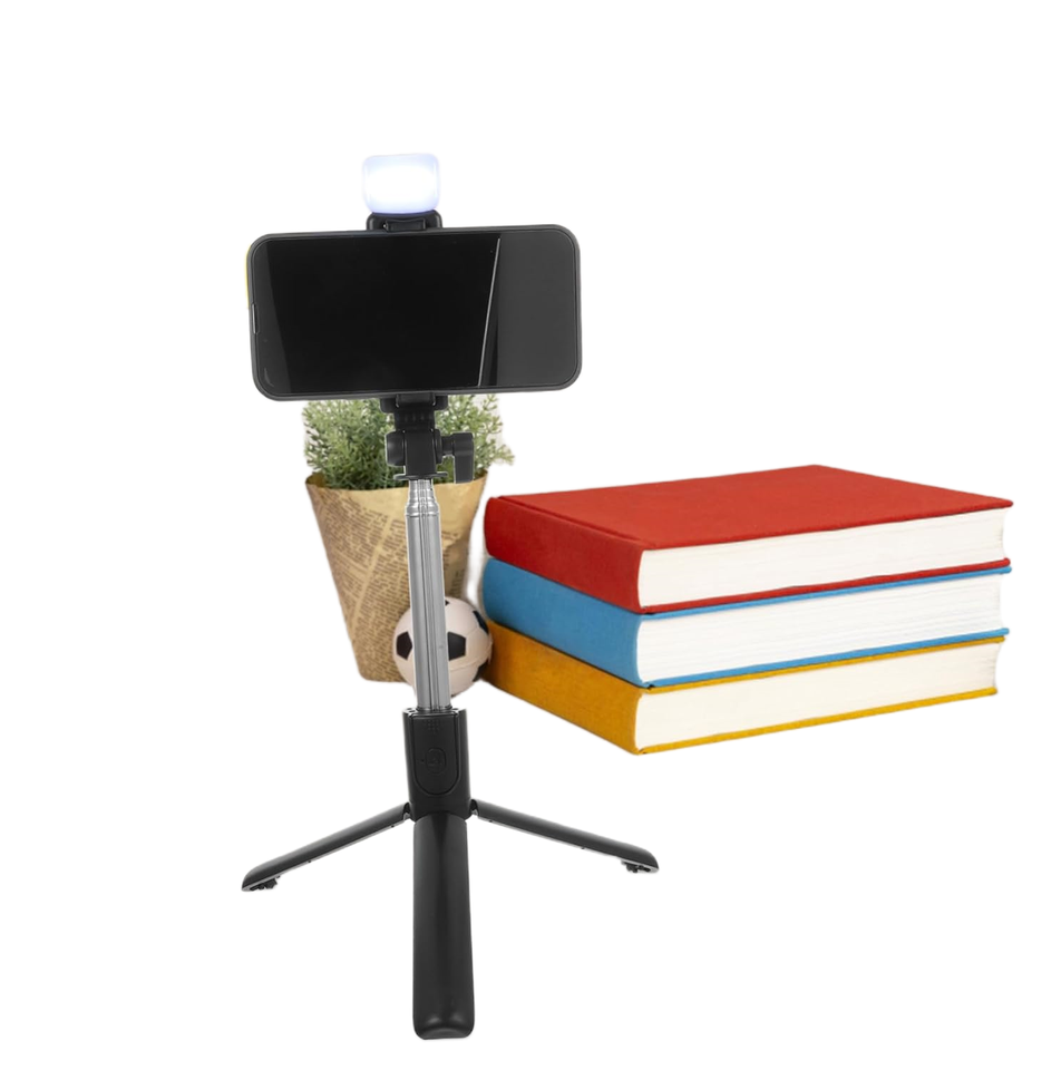 Palo de Selfie con Control Remoto Inalámbrico, Trípode Plegable Elástico de Acero Inoxidable con Soporte BT y Luz LED