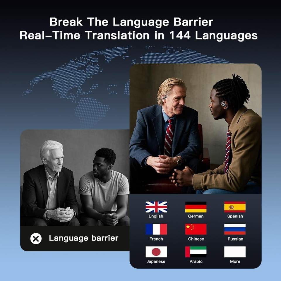 Auriculares de Traducción Inalámbrica para iPhone y Android con 144 Idiomas de IA en Línea, Auriculares OWS en Tiempo Real para Viajes y Negocios, Nuevo