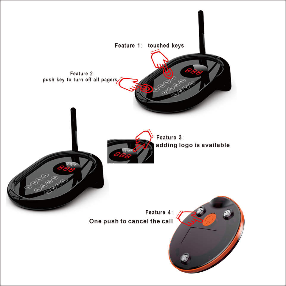 Nombre del producto:Sistema de buscapersonas inalámbrico con 10 buscapersonas vibratorios.