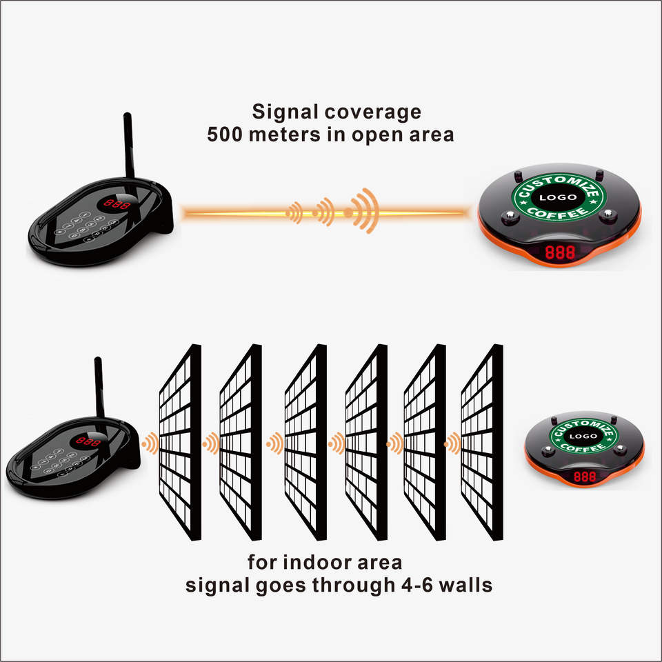 Sistema de paginación inalámbrico a prueba de agua posavasos buscapersonas zumbador cola llamada para restaurante para llamar al cliente que recoge alimentos