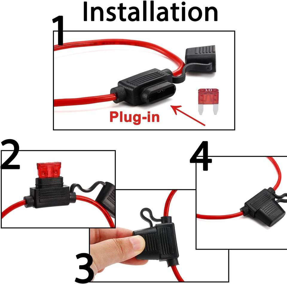 Portafusibles de cuchilla ATO/ATC en línea de 14 AWG con arnés de cableado, portafusibles de coche impermeable de calibre 14 de repuesto con tapa