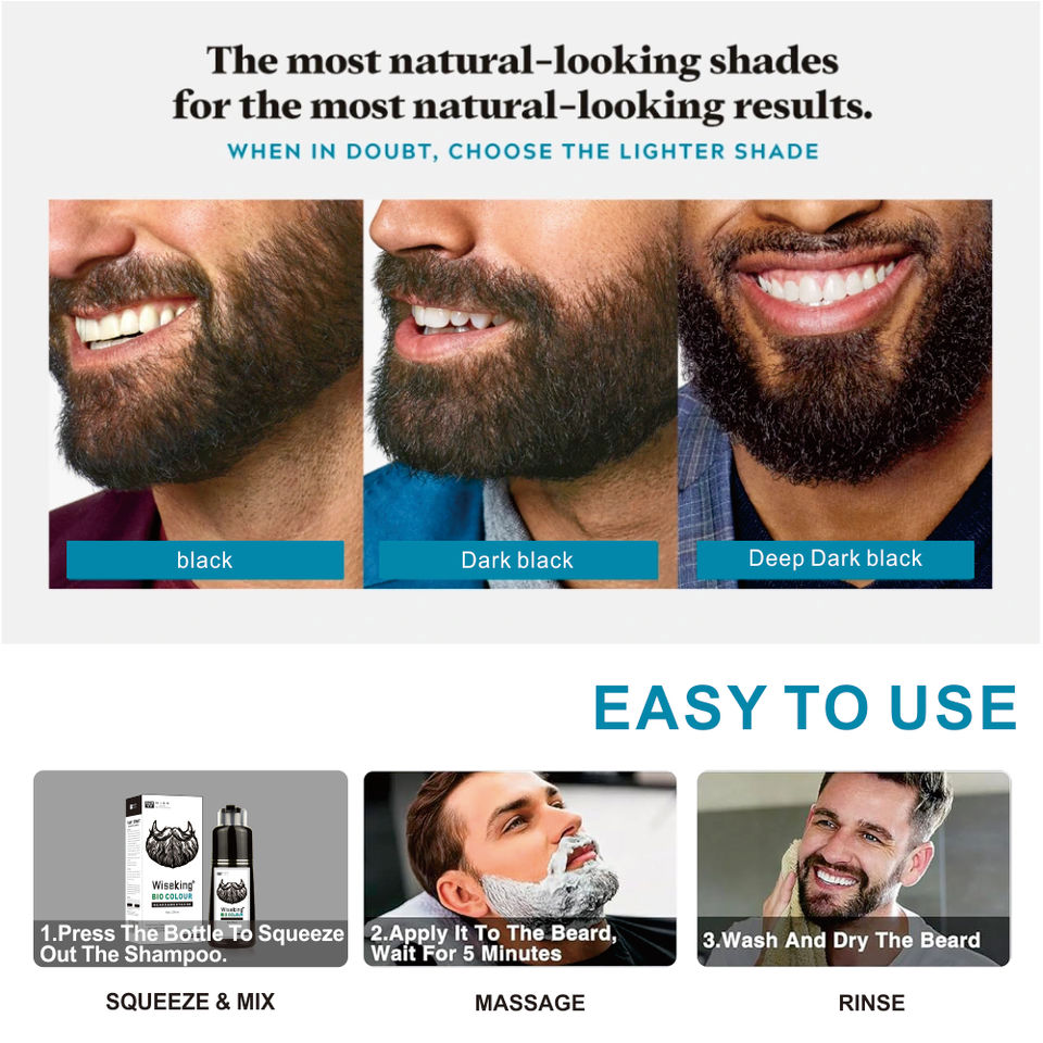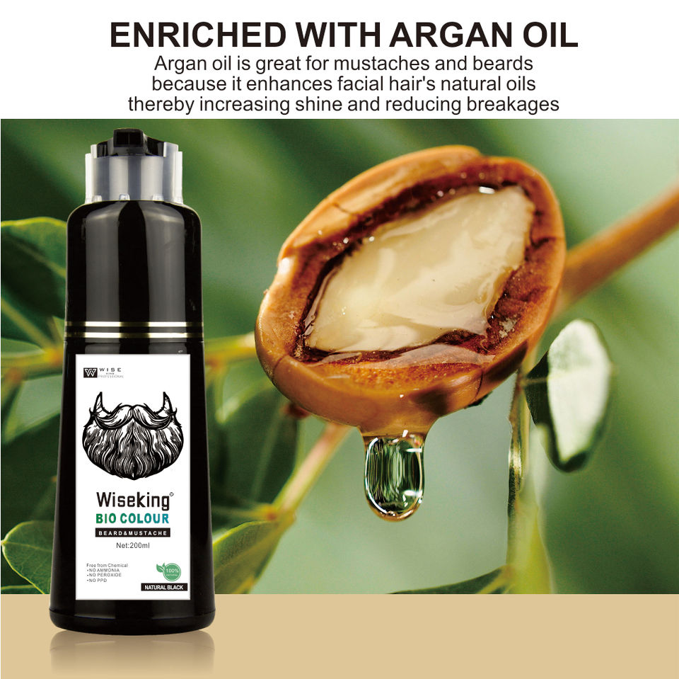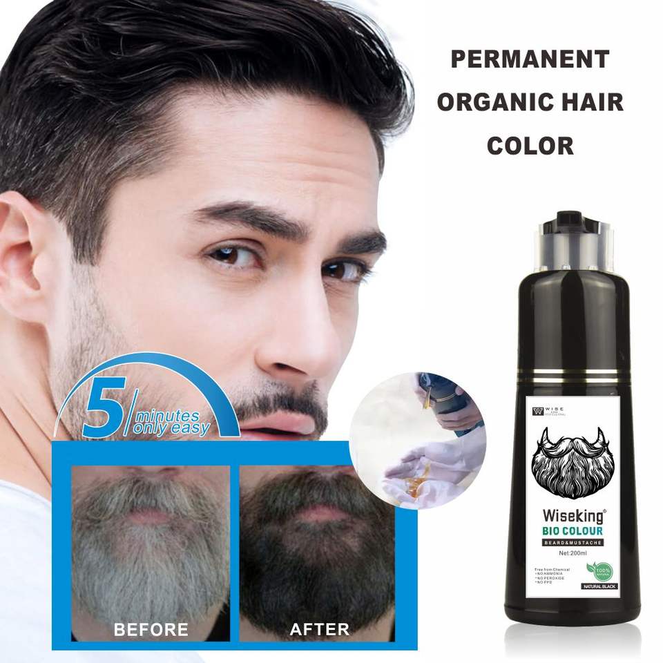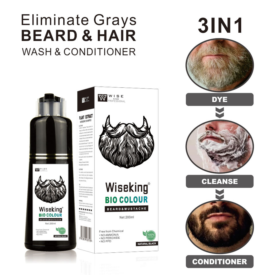 Wiseking Bio Color Beard Shampoo 200ml Color negro Beard Dye Cubre rápidamente Barba blanca Color negro natural No PPD Black Shampoo