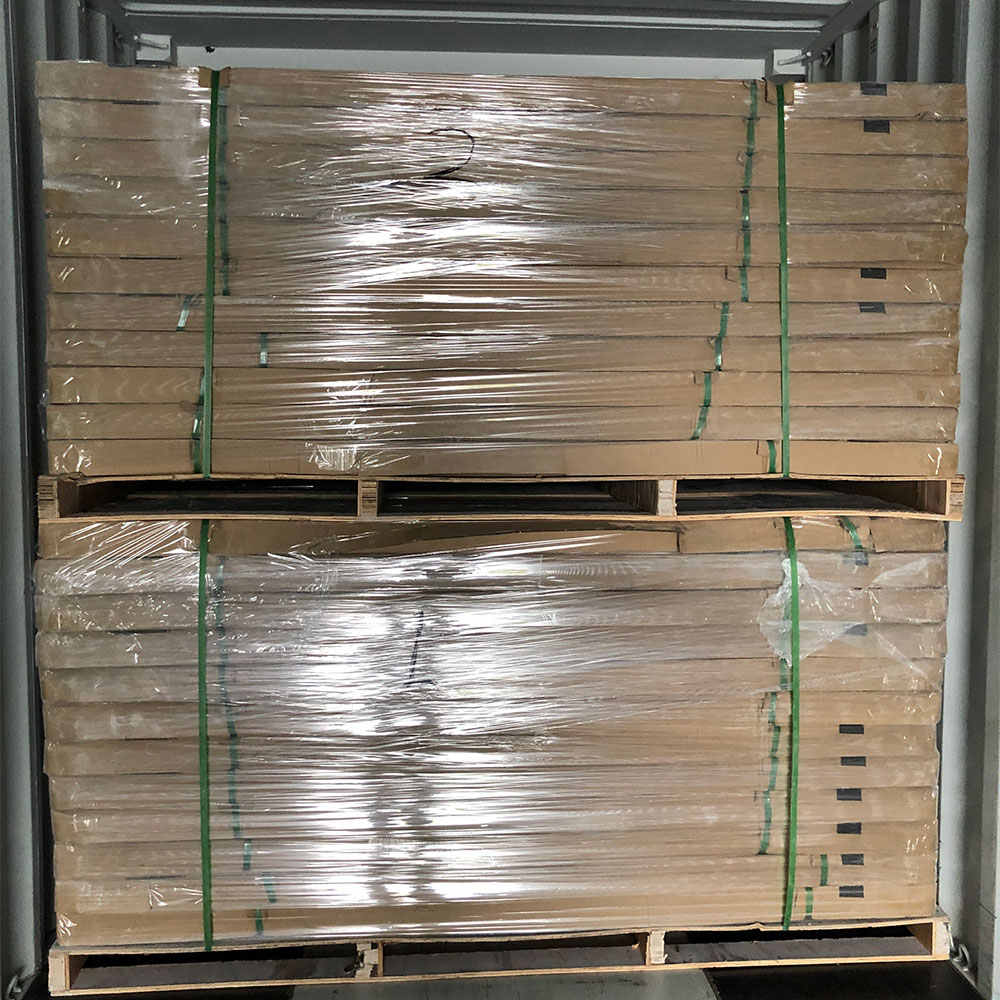 Para usar la película de espuma cubra cada cartón y empaque totalmente con paletas de madera: