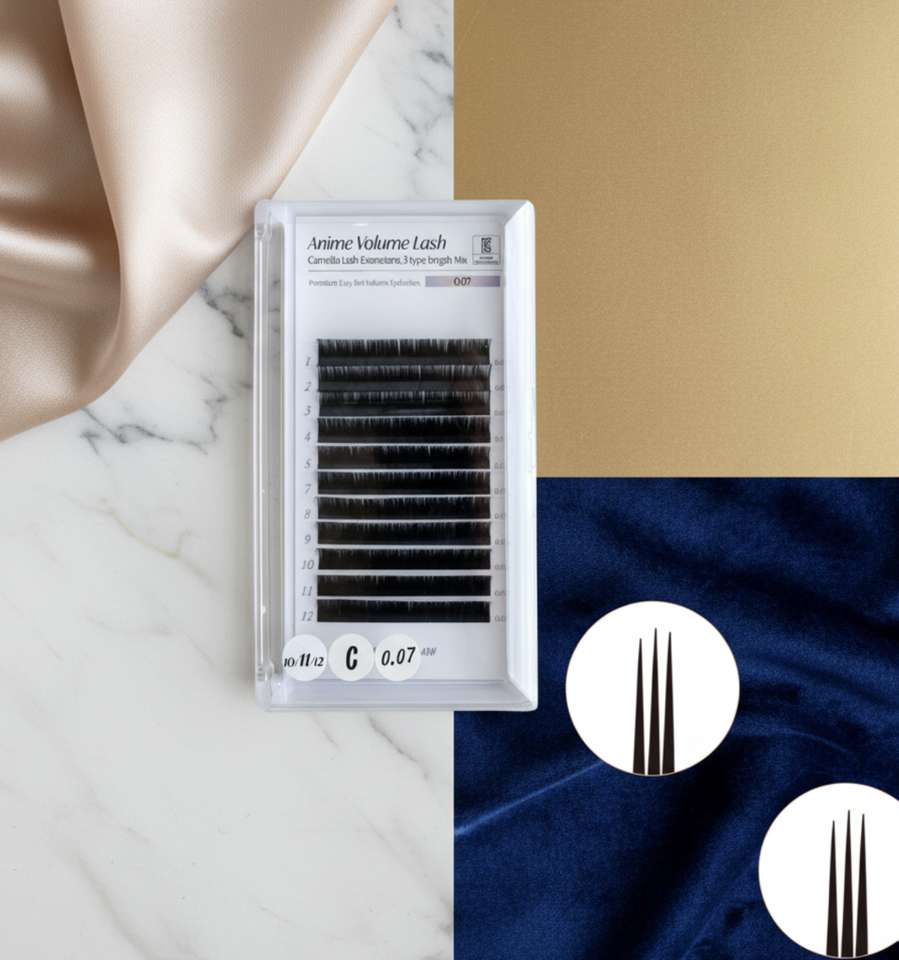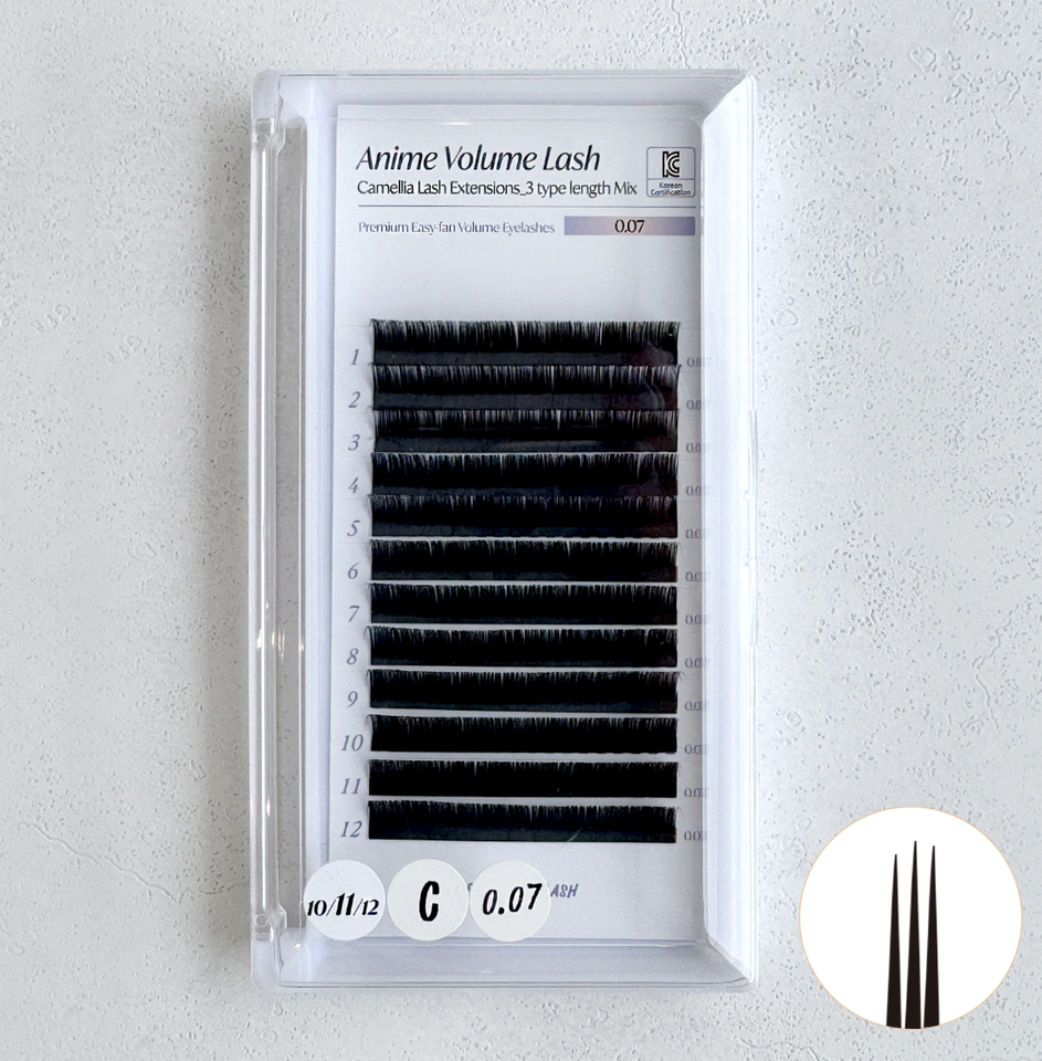 Extensiones de pestañas de fibra coreana Wispy Anime 0,05mm 8-18mm KC Certified J JC C D + L Curl Mixed Spiky Textured Volume Lashes