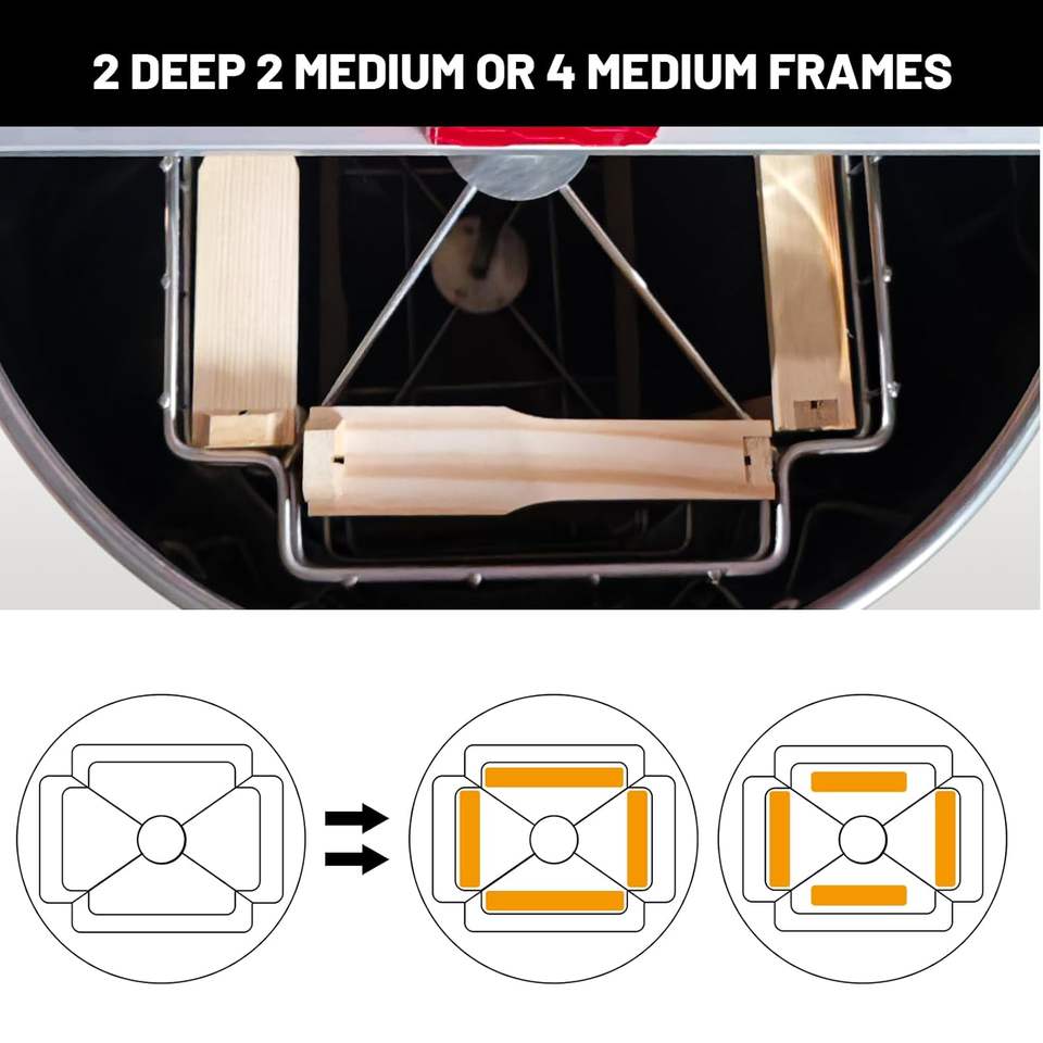 Witbee en Stock: Kit de Apicultura para Principiantes con Extractor Manual de Miel de Acero Inoxidable de 2 y 4 Cuadros Profundos/Medianos con Engranajes