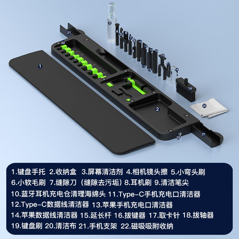 Kit de Limpieza para Teclado, Reposamuñecas para Teclado Mecánico, Protección para las Muñecas, Caja de Almacenamiento para Escritorio, Limpieza de Auriculares