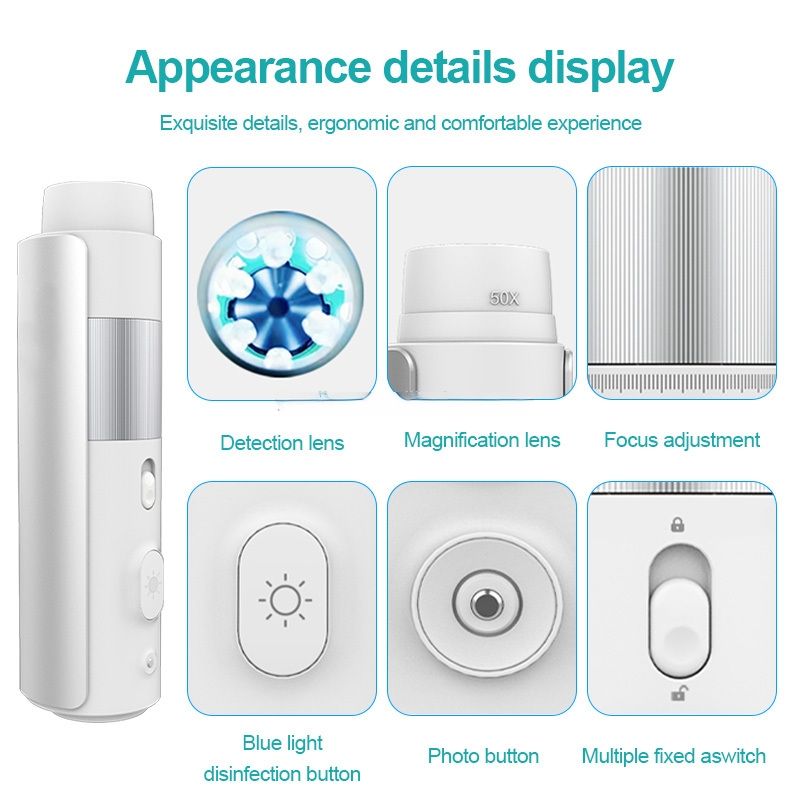 Analizador de Cuero Cabelludo Profesional con IA, Detector de Folículos Pilosos, Analizador de Piel con Luz UV 200X para Uso Doméstico