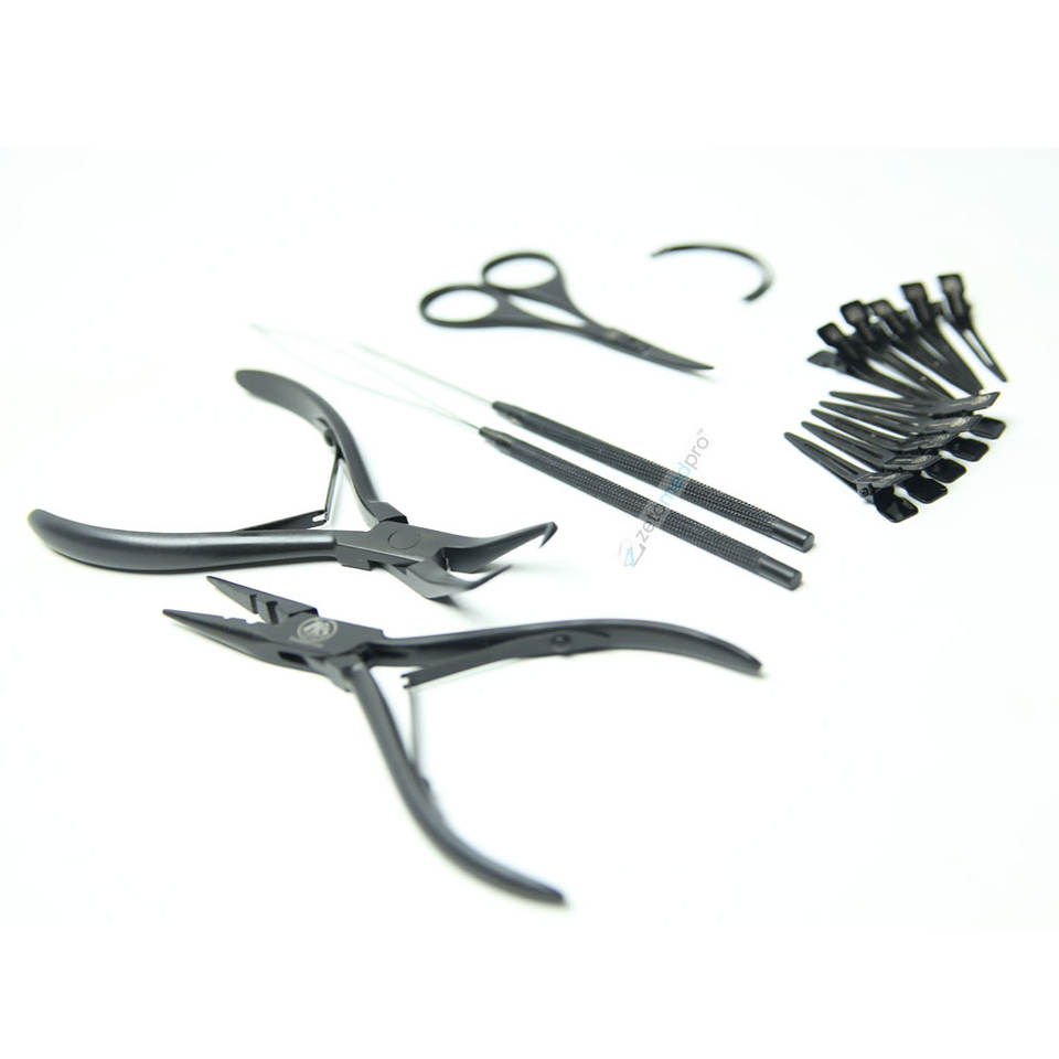 Conjunto de herramientas para extensiones de cabello con reseñas de clientes: Alicates para microenlaces, herramienta de extracción, agujas con bucle, peine de cola, tijeras OEM