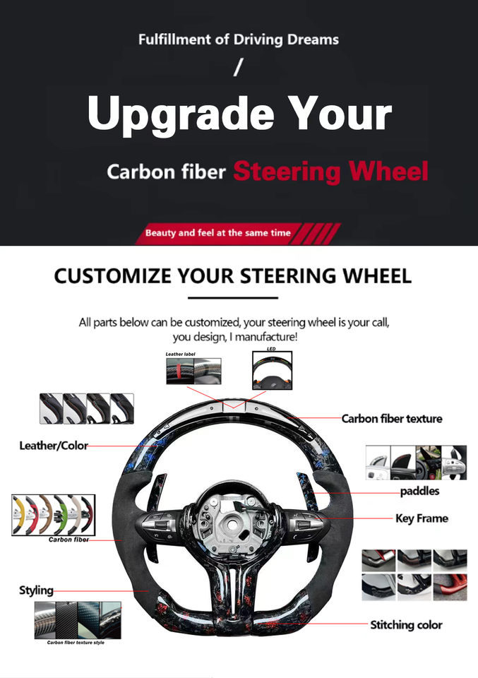 Construcción de fibra de carbono: El uso de fibra de carbono en la construcción del volante asegura una estructura ligera pero fuerte y rígida, mejorando el rendimiento general.
