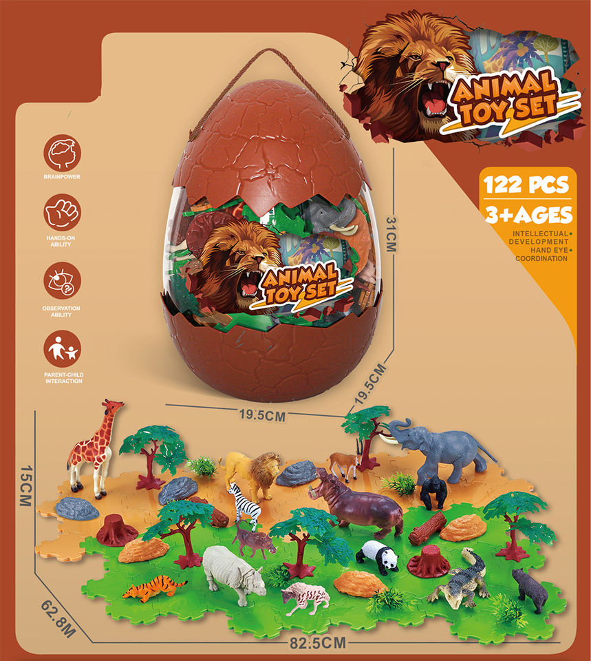 Juguete Educativo Sorpresa de Huevo de Dinosaurio de 12 Pulgadas con Bloques de Plástico para Armar, Modelo de Animales de Granja Salvajes
