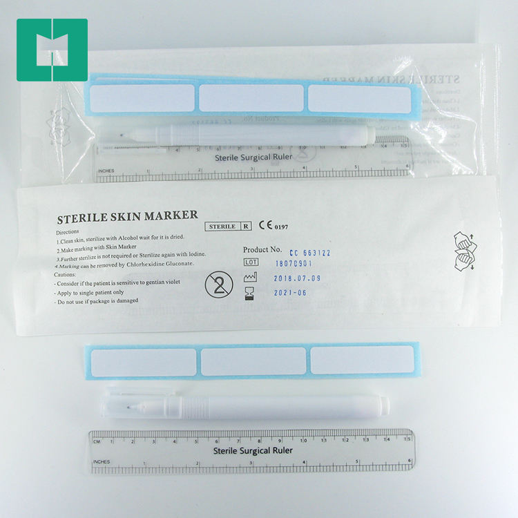 Rotulador de piel de tatuaje médico lavable blanco con regla rotulador de piel quirúrgica